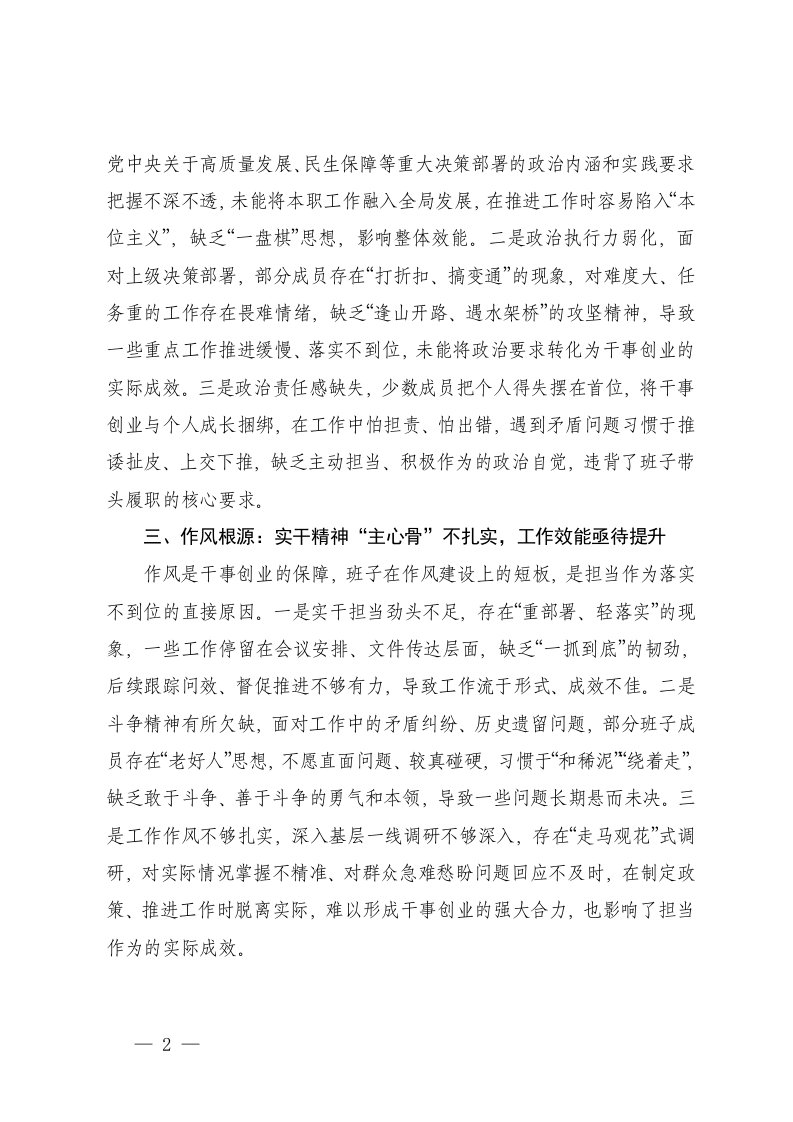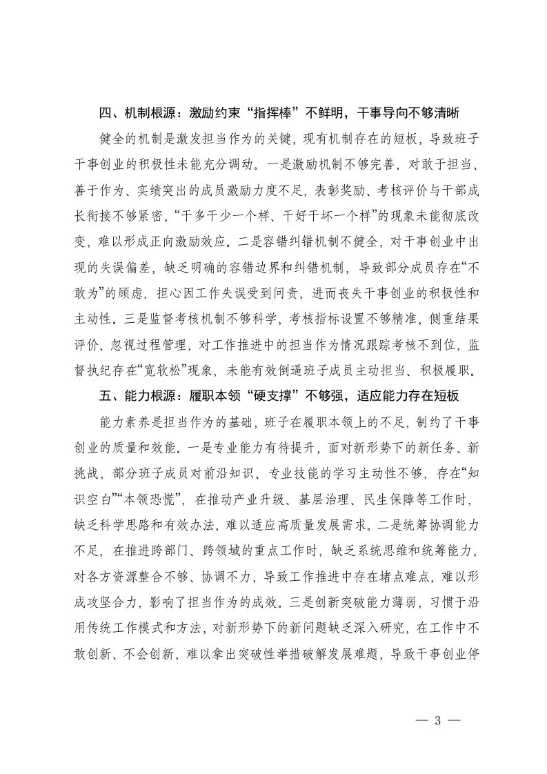 标题:2025年度班子带头干事创业担当作为方面存在问题原因分析