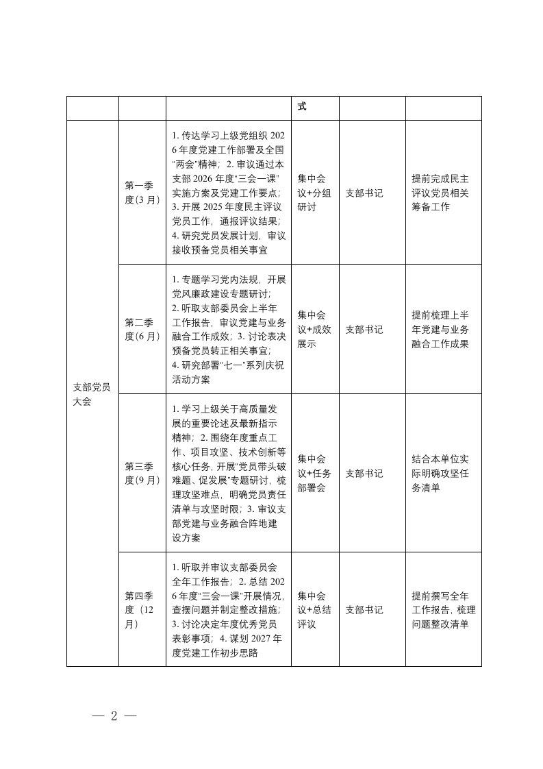 三会一课,计划2026年度三会一课计划表三会一课,计划2026年度三会一课计划表
