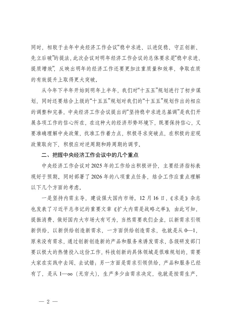 2026年中央经济工作会议精神党委理论学习中心组集体学习会上的研讨发言
