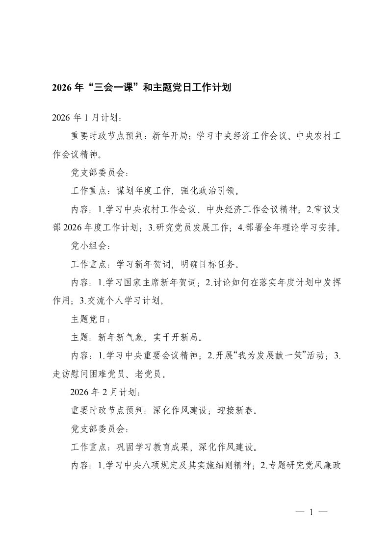 工作计划,三会一课,主题党日,计划,工作详细版2026年三会一课和主题党日工作计划工作计划,三会一课,主题党日,计划,工作详细版2026年三会一课和主题党日工作计划