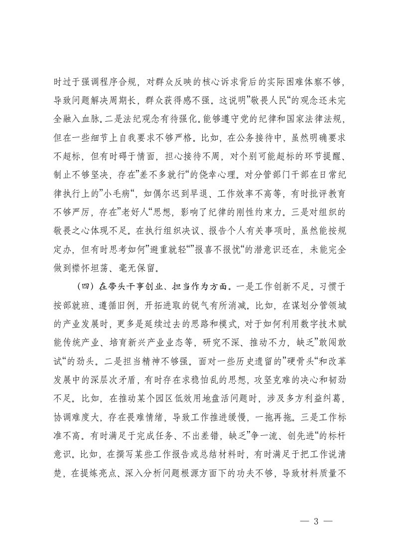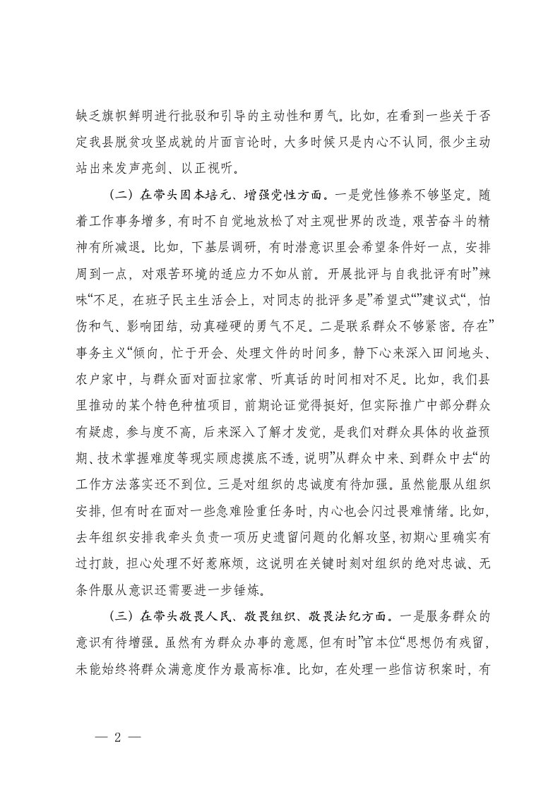 标题:2025年度民主生活会个人五个带头对照检查材料范文