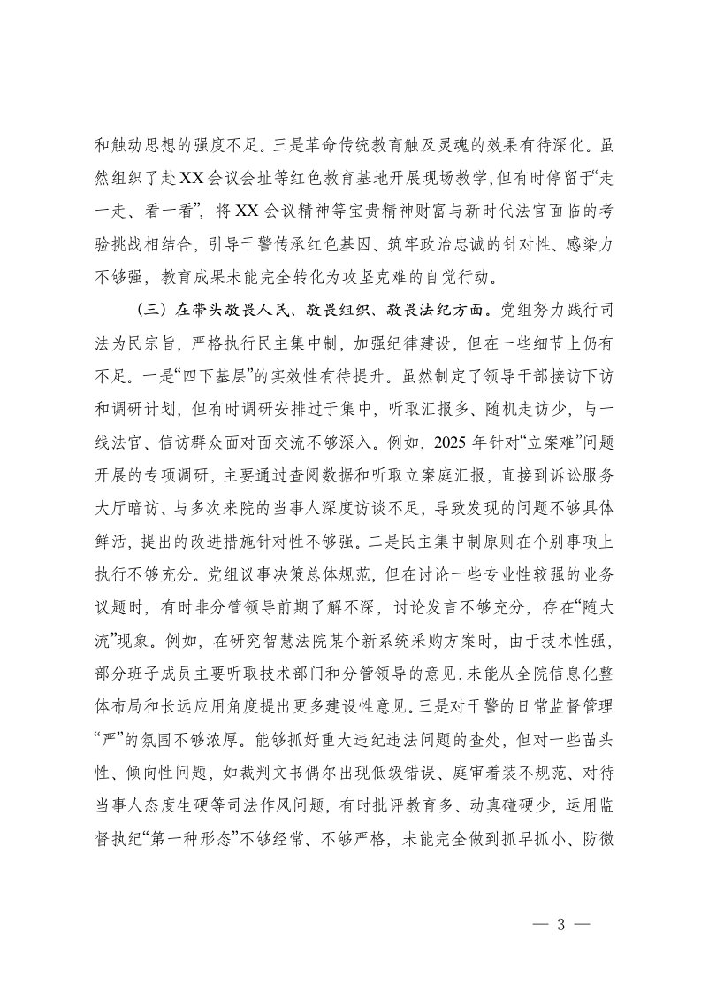 标题:2025年度中院党组民主生活会五个带头对照检查材料文稿