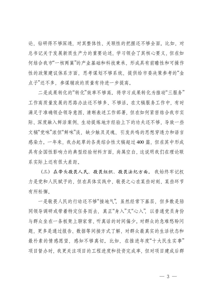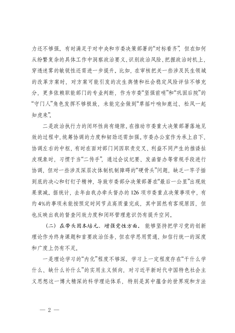 办公室主任2025年度专题民主生活会对照检查发言材料五个带头