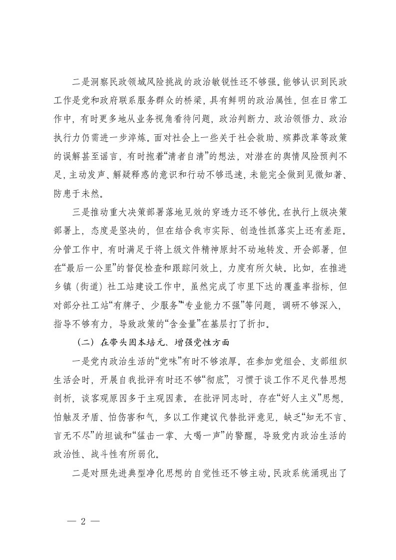 标签: #党员干部 #民主生活会 #对照检查材料