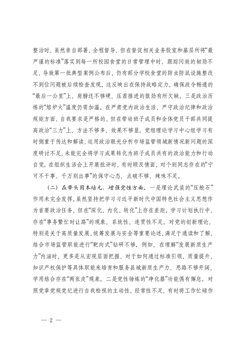 标题:党组书记2025年度民主生活会个人对照检查材料五个带头