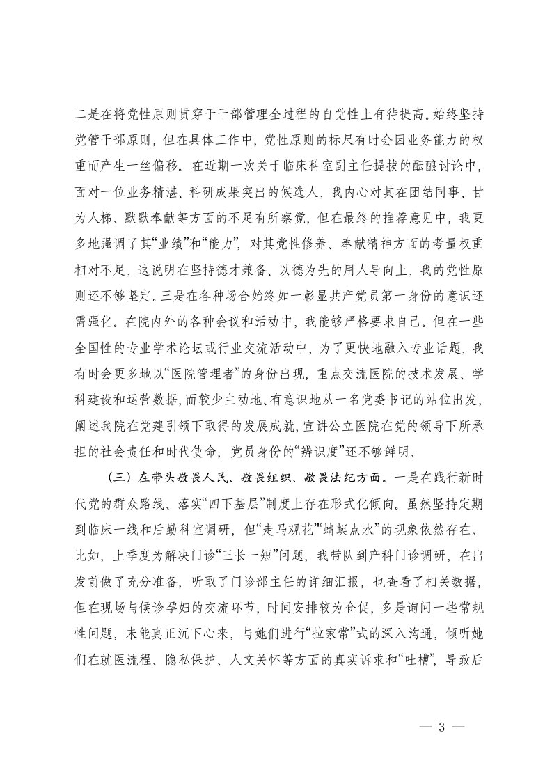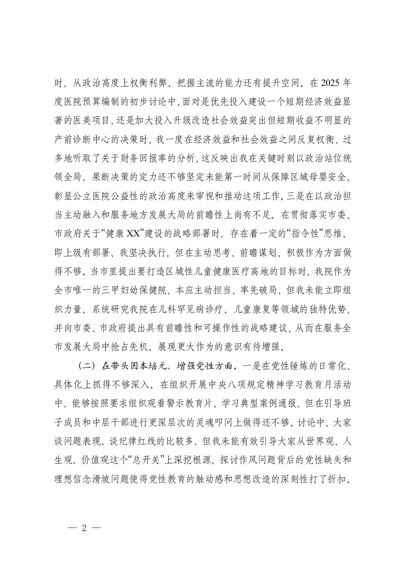 妇幼保健院党委书记2025年度民主生活会个人五个带头对照检查材料范文