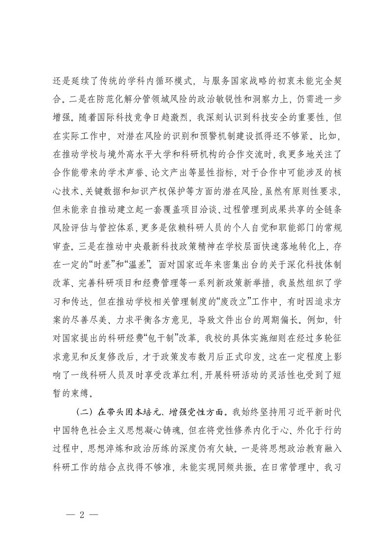 标题:高校领导2025年度民主生活会个人五个带头对照检查材料范文