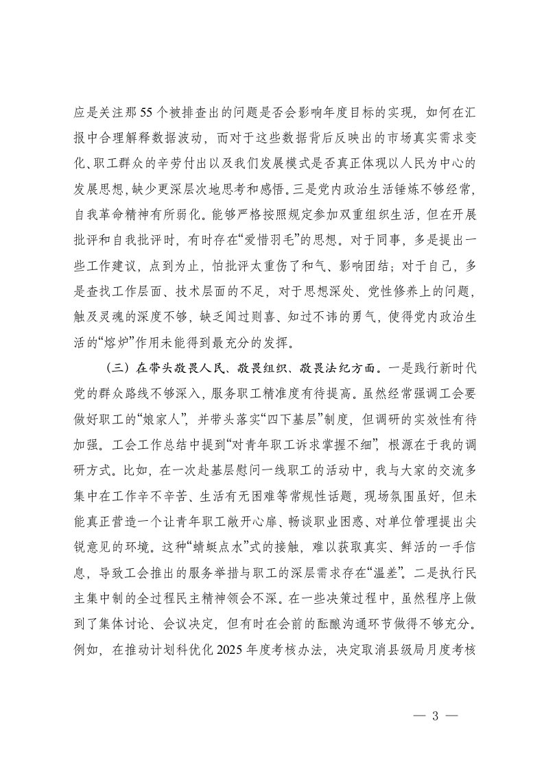 标题:工会主席2025年度民主生活会个人对照检查材料五个带头
