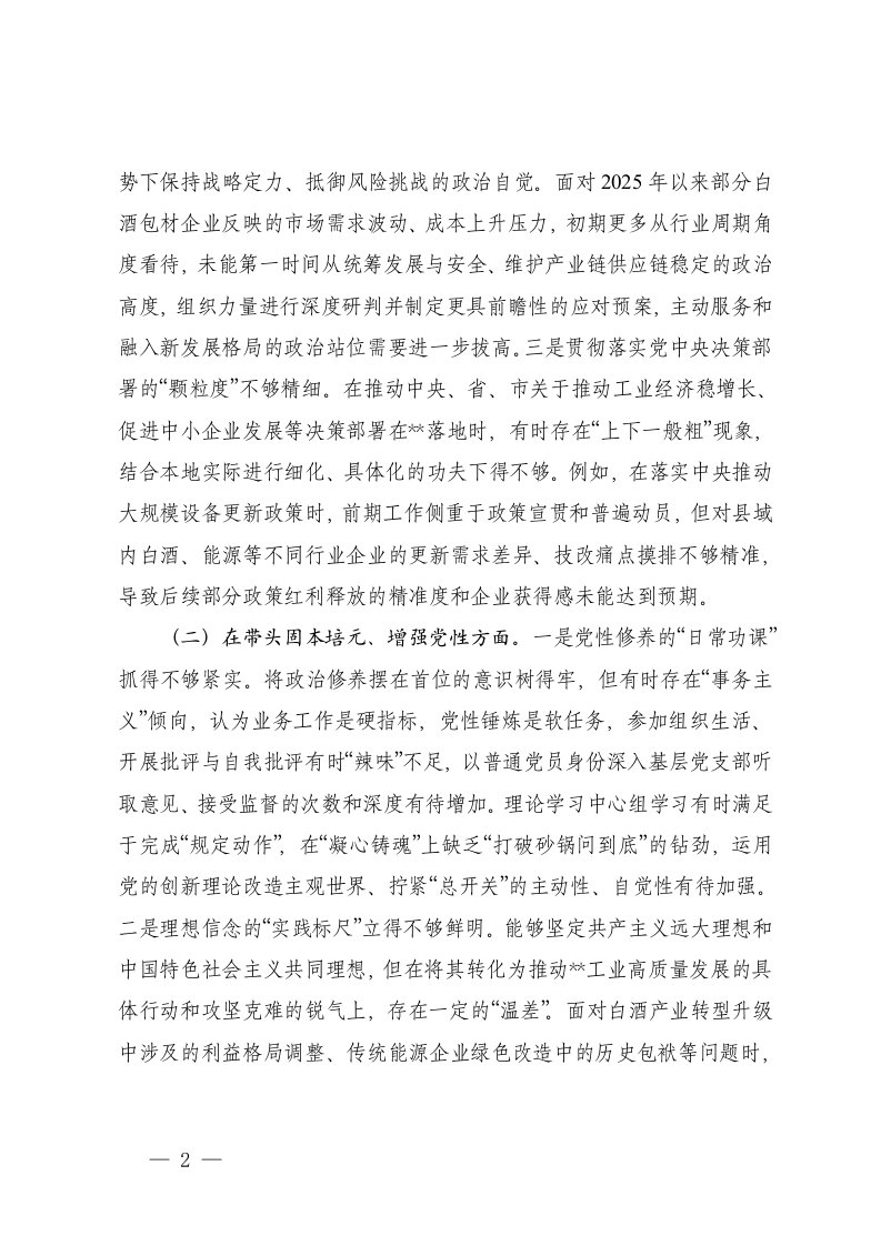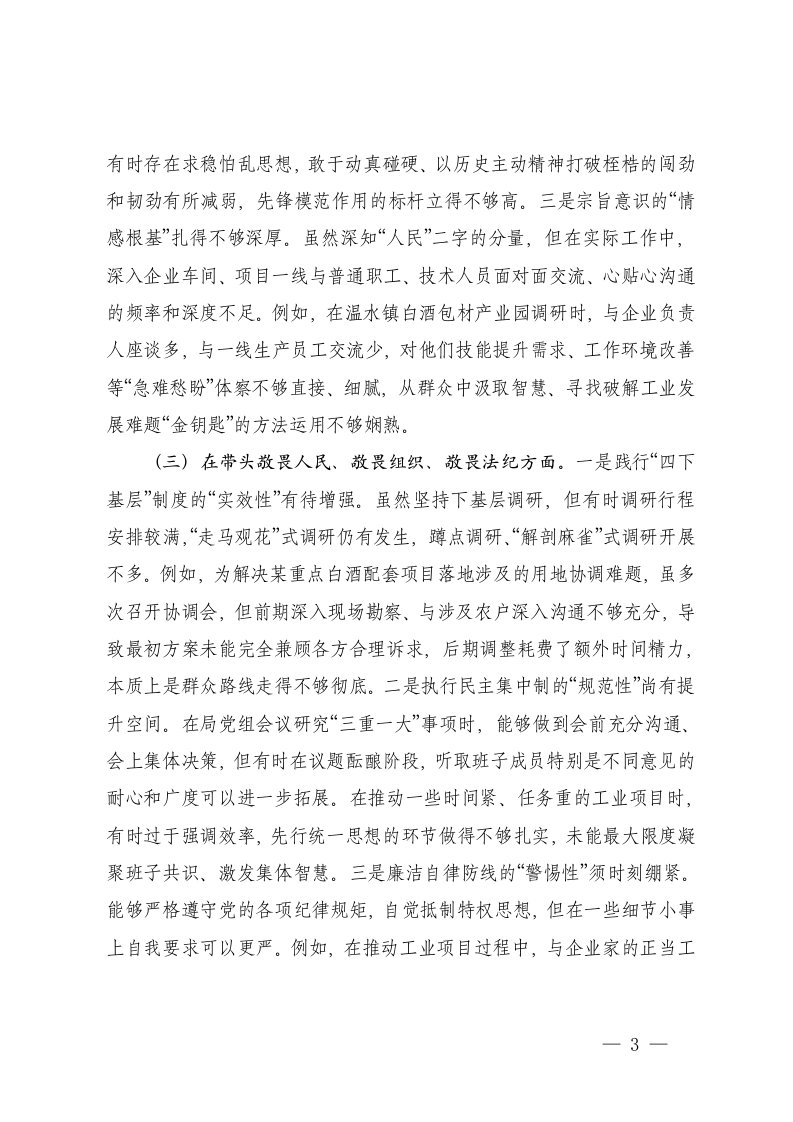 标题:工信党组书记2025年度民主生活会个人对照检查材料五个带头
