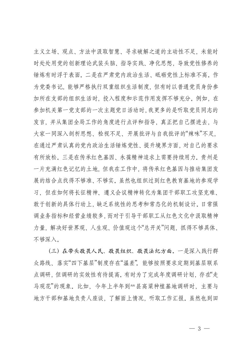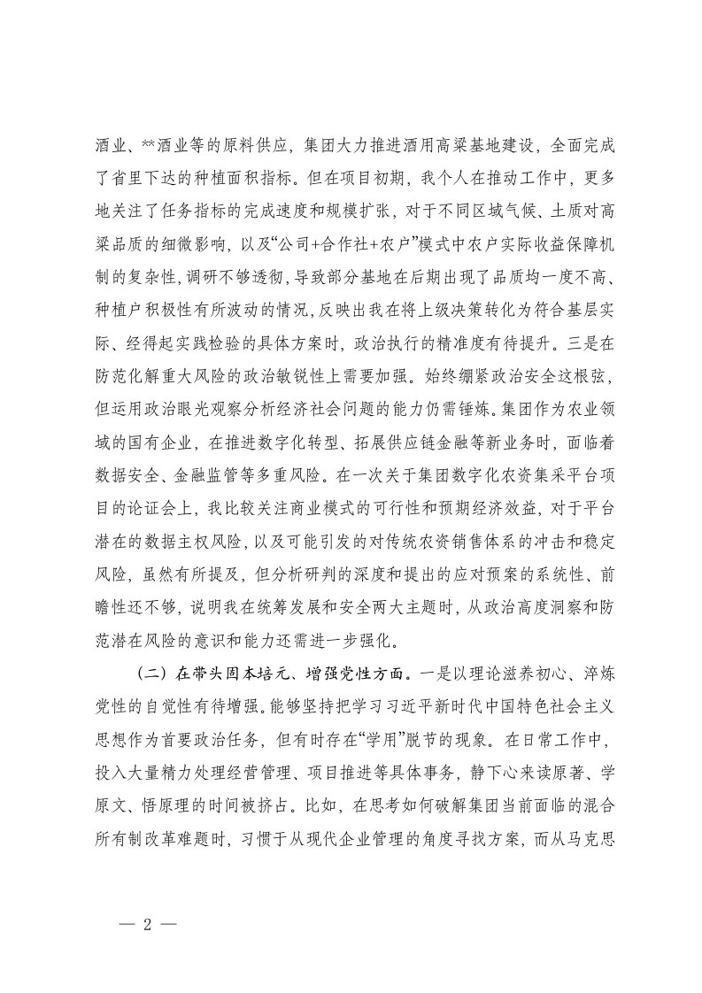 集团党委书记2025年度民主生活会个人对照检查材料五个带头 (1)