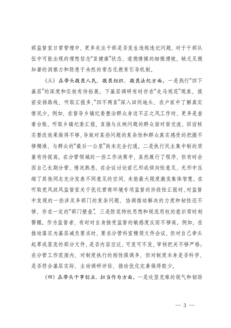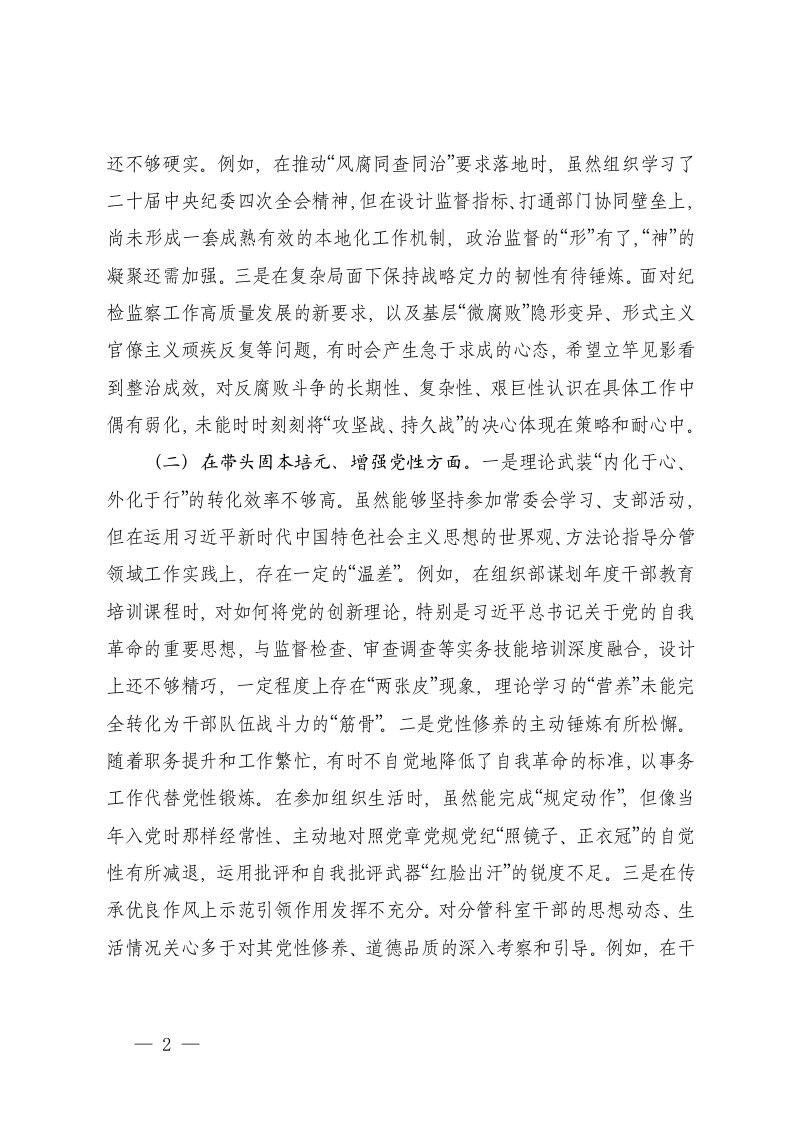 标题:纪委监委委员2025年度民主生活会个人五个带头对照检查材料文稿