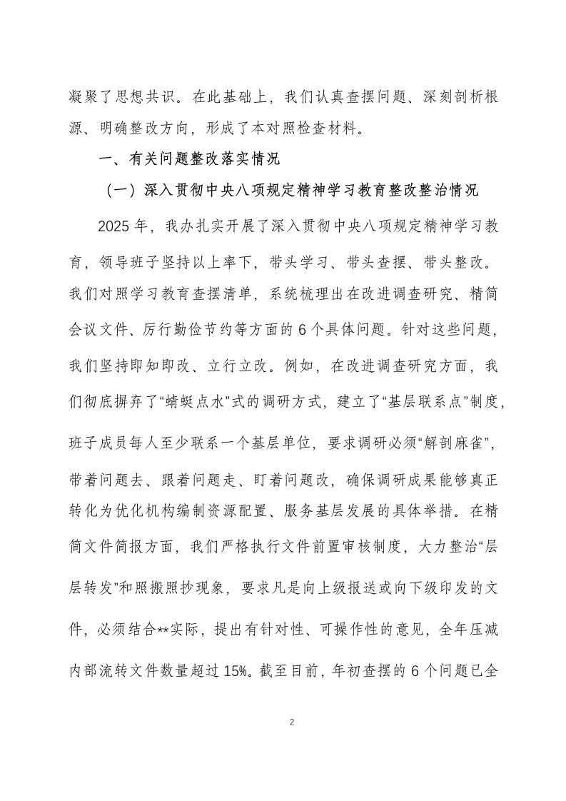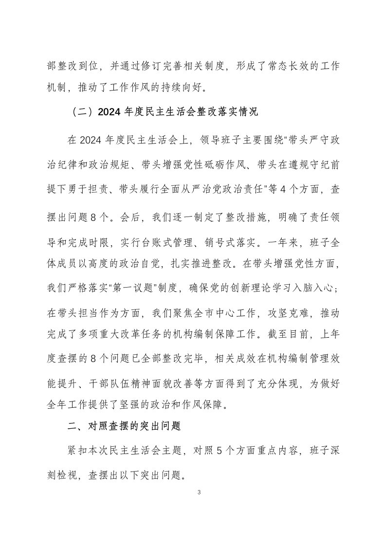 标题:2025年度民主生活会领导班子对照检查材料3篇