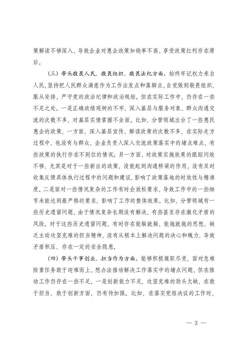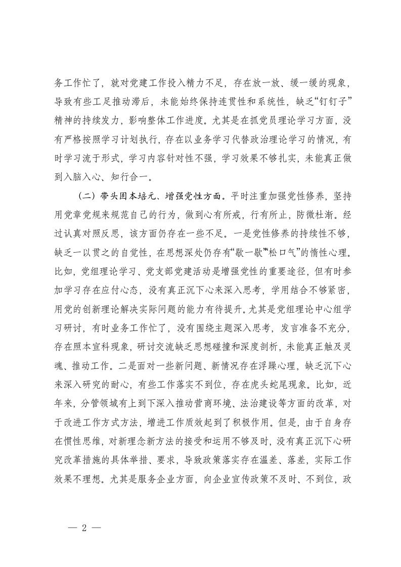 标题:部门副科级领导2025年民主生活会个人发言提纲五个