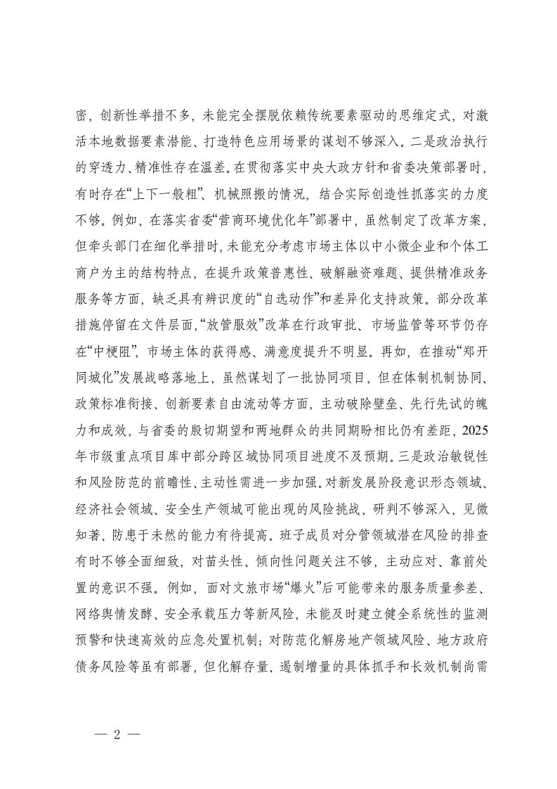 标题:党员干部2025年度专题民主生活会对照检查材料