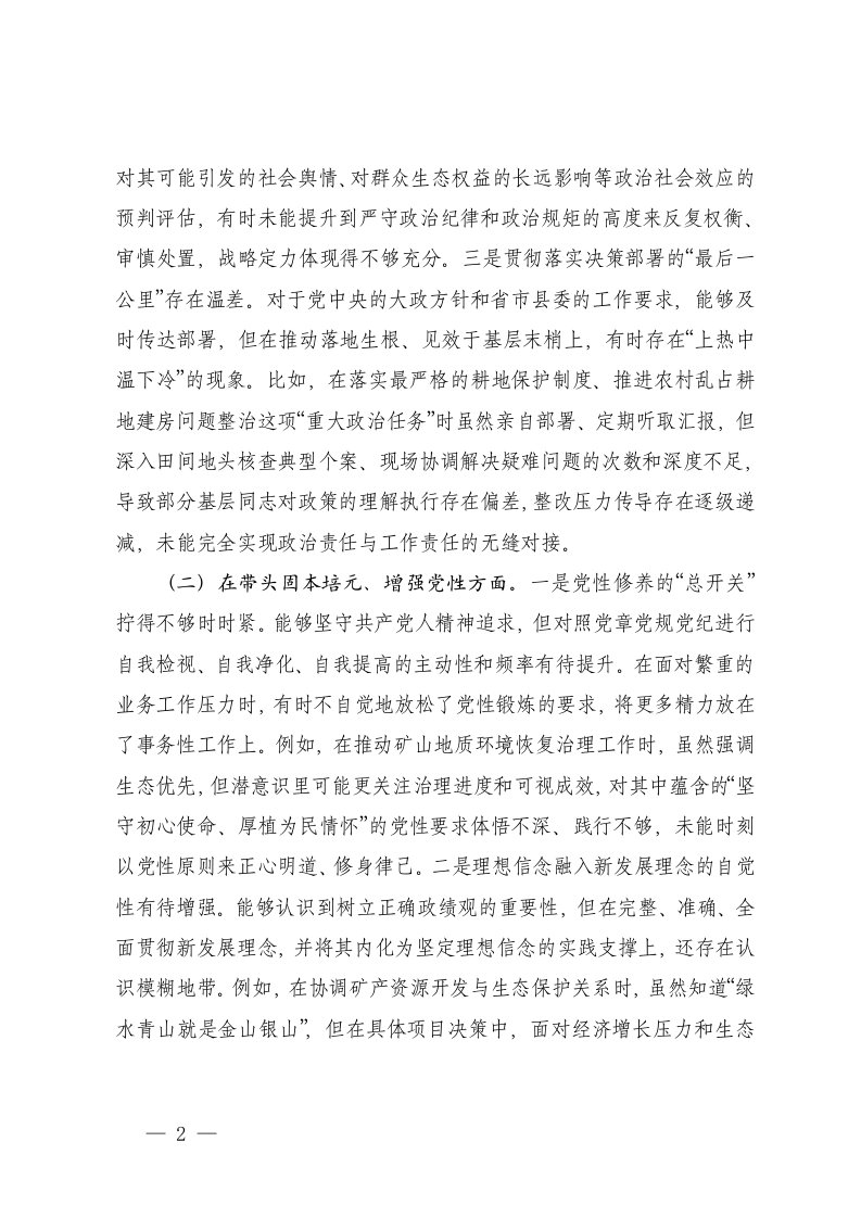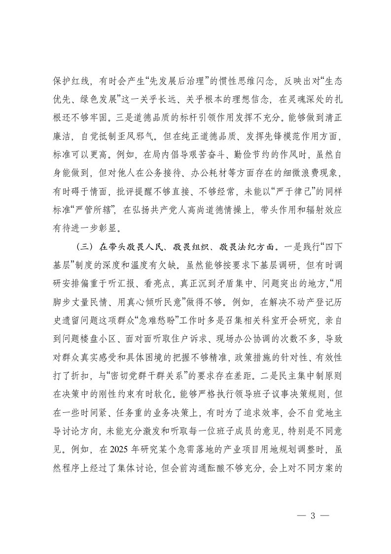 标题:党组书记2025年度民主生活会个人对照检查材料五个带头