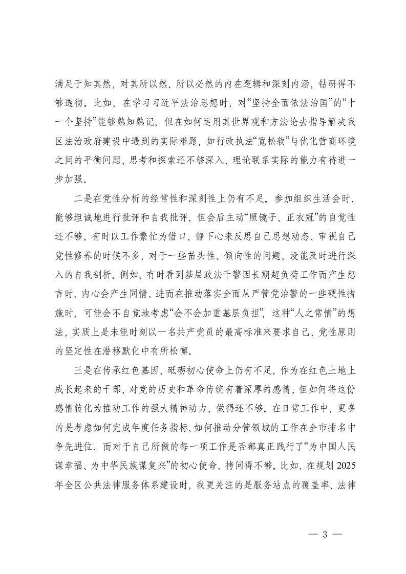 标题:二把手2025年度民主生活会个人五个带头对照检查材料