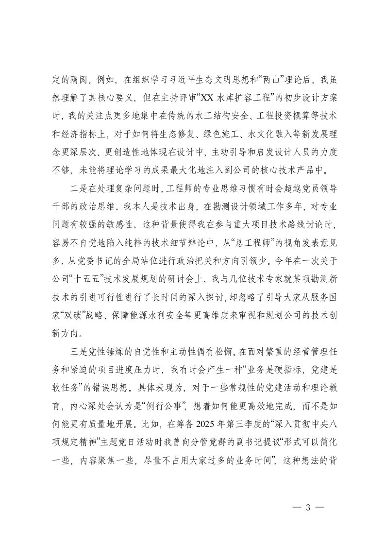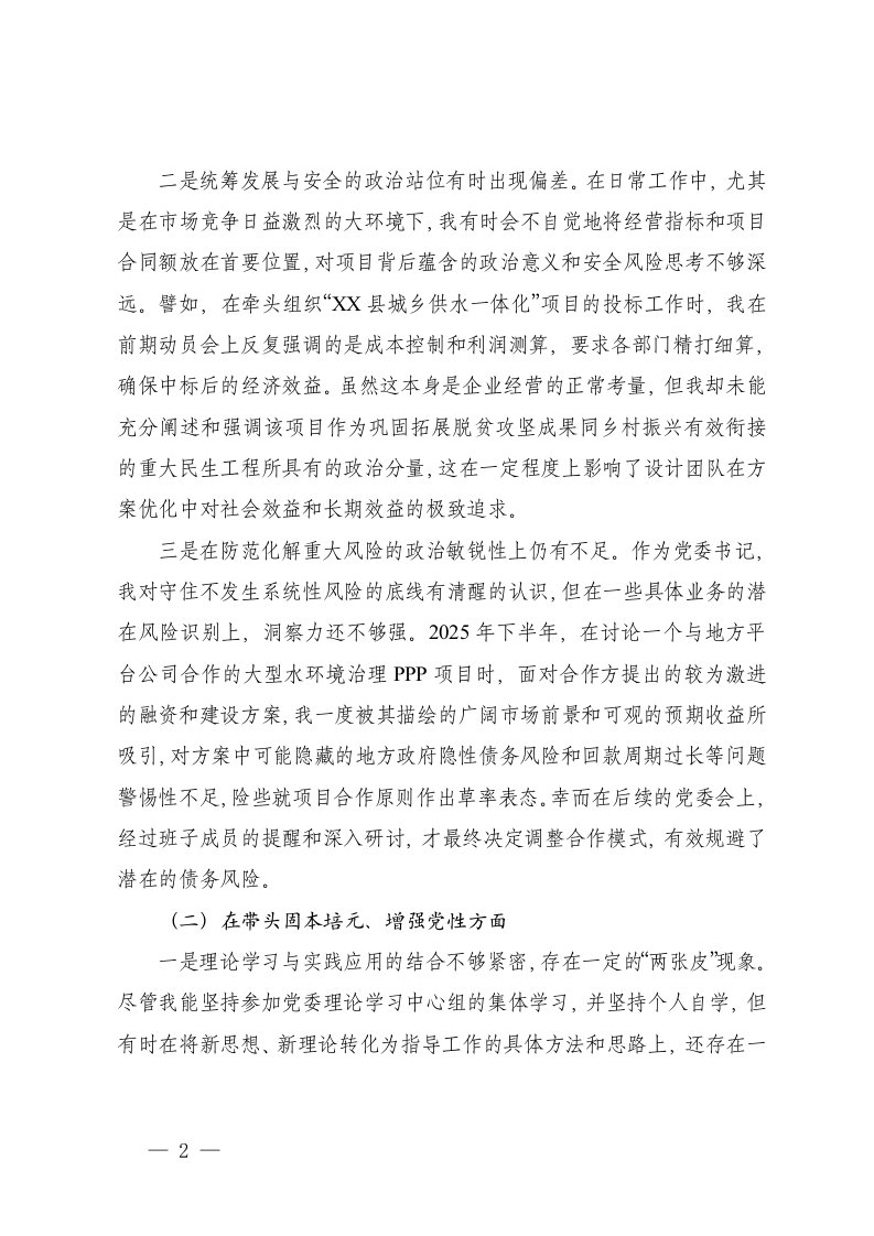 标题:公司党委书记2025年度民主生活会个人对照检查材料五个带头