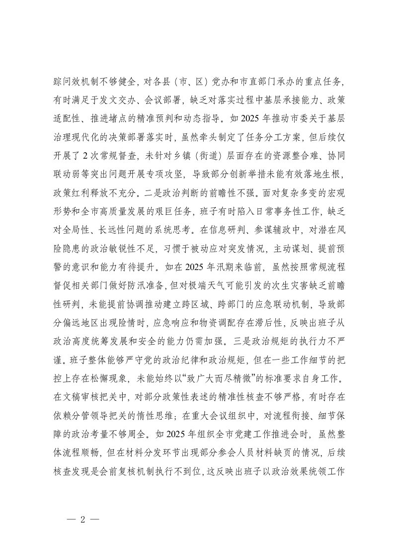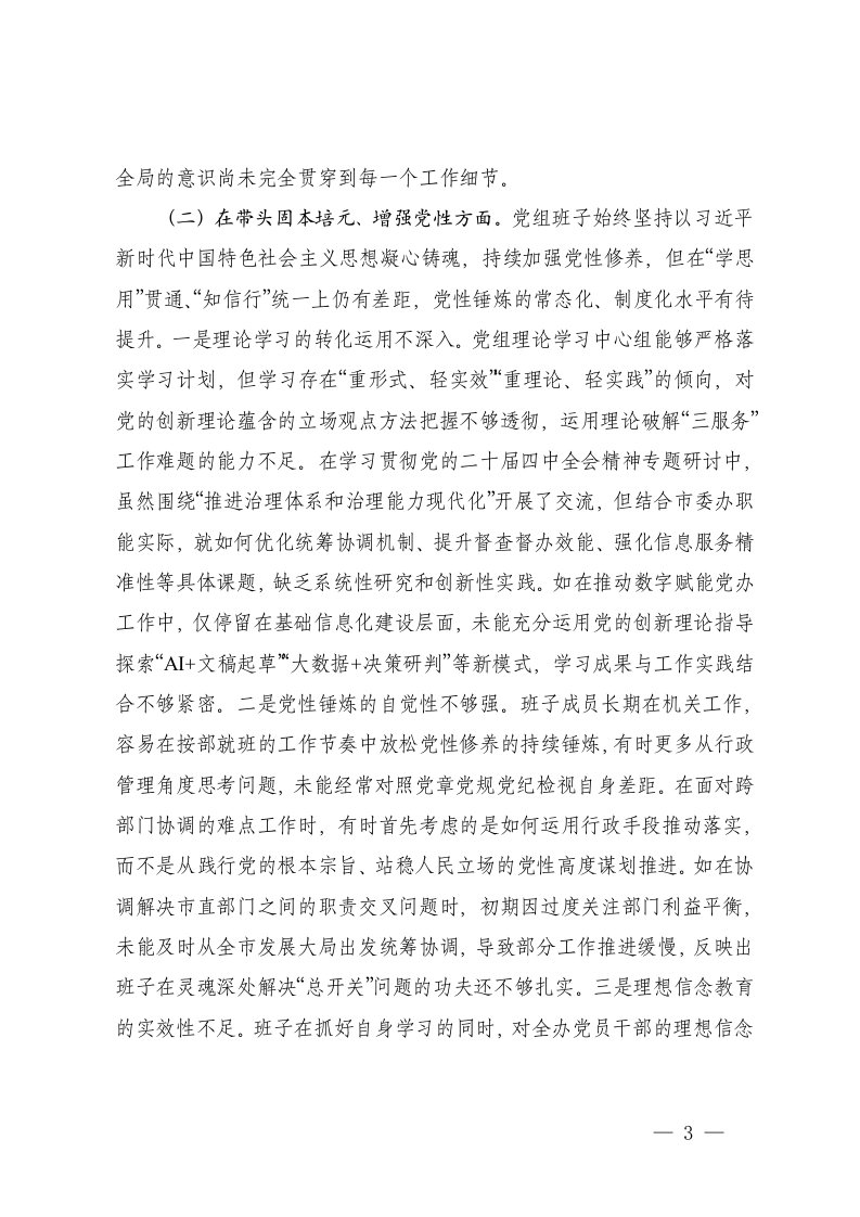 标题:机关办公室党组2025年度民主生活会对照检查材料