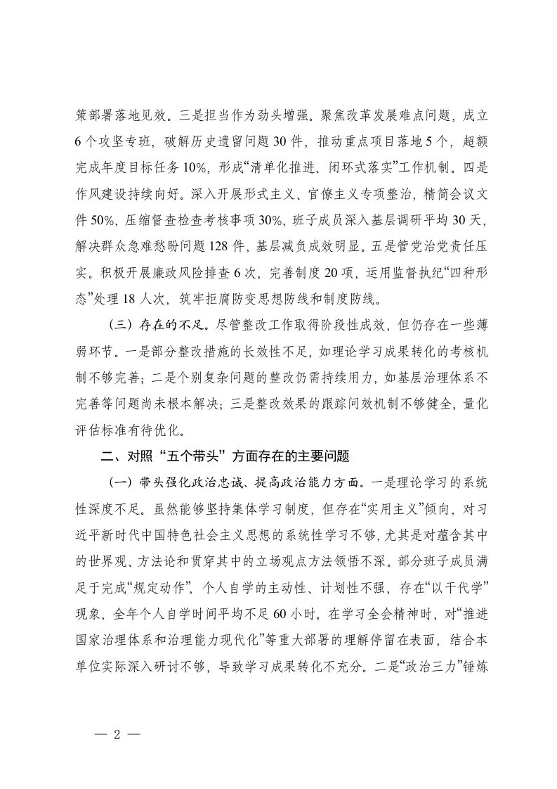 标题:领导干部2025年度民主生活会对照材料