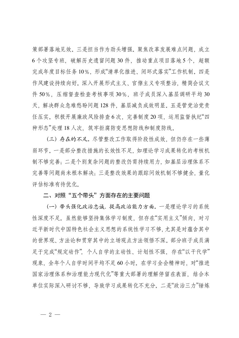 标题:领导干部2025年度民主生活会对照材料五个带头