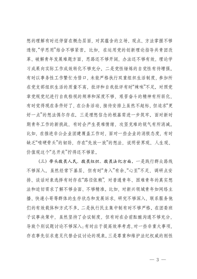 团委书记2025年度民主生活会五个带头对照检查材料含整改情况及案例分析范文