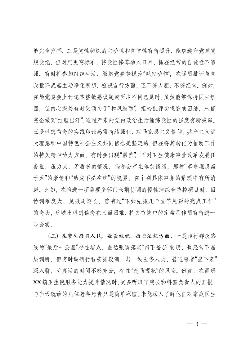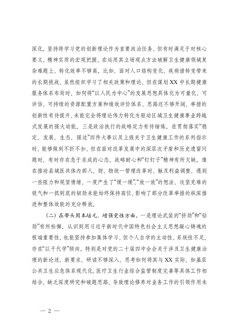 标题:卫健部门党组书记2025年度民主生活会个人对照检查材料五个带头范文