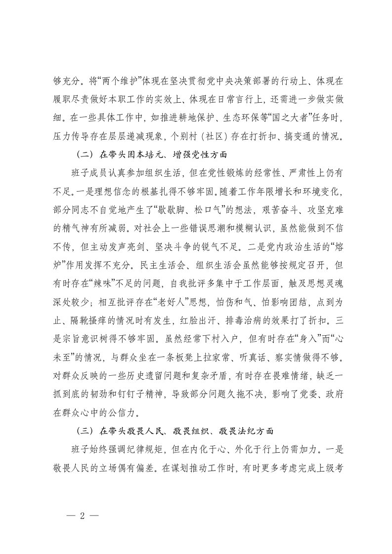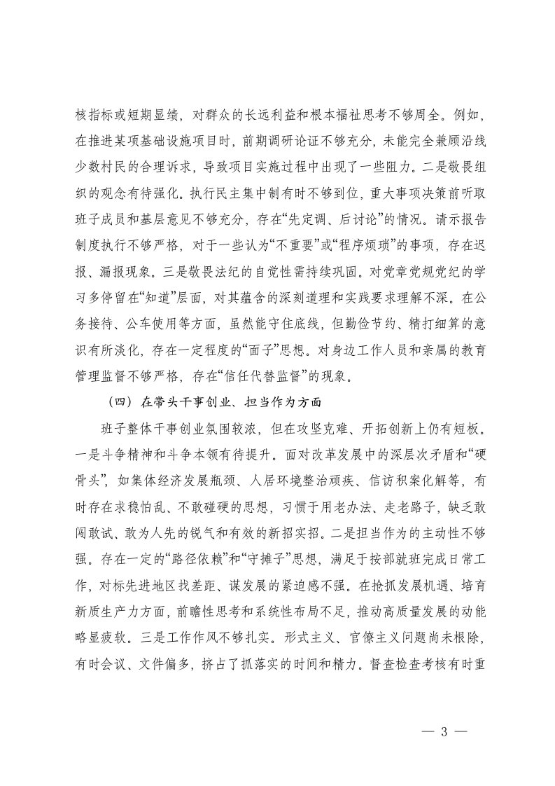 标题:乡镇党委班子2025年度民主生活会五个带头对照检查发言