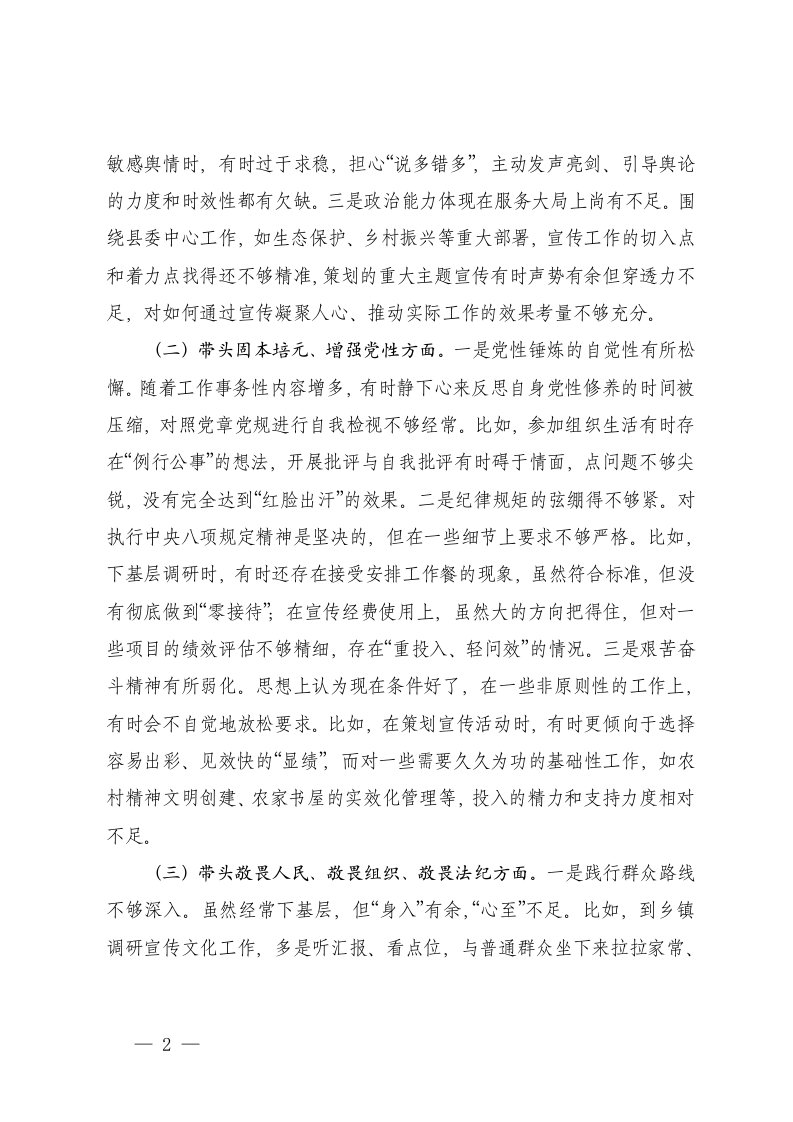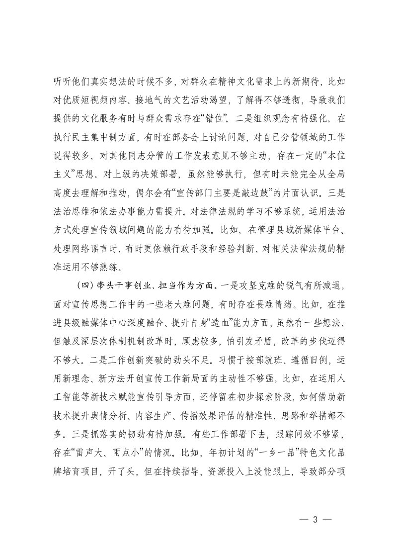 标题:宣传部部长在2025年度民主生活会对照检查材料