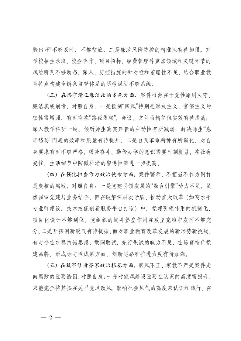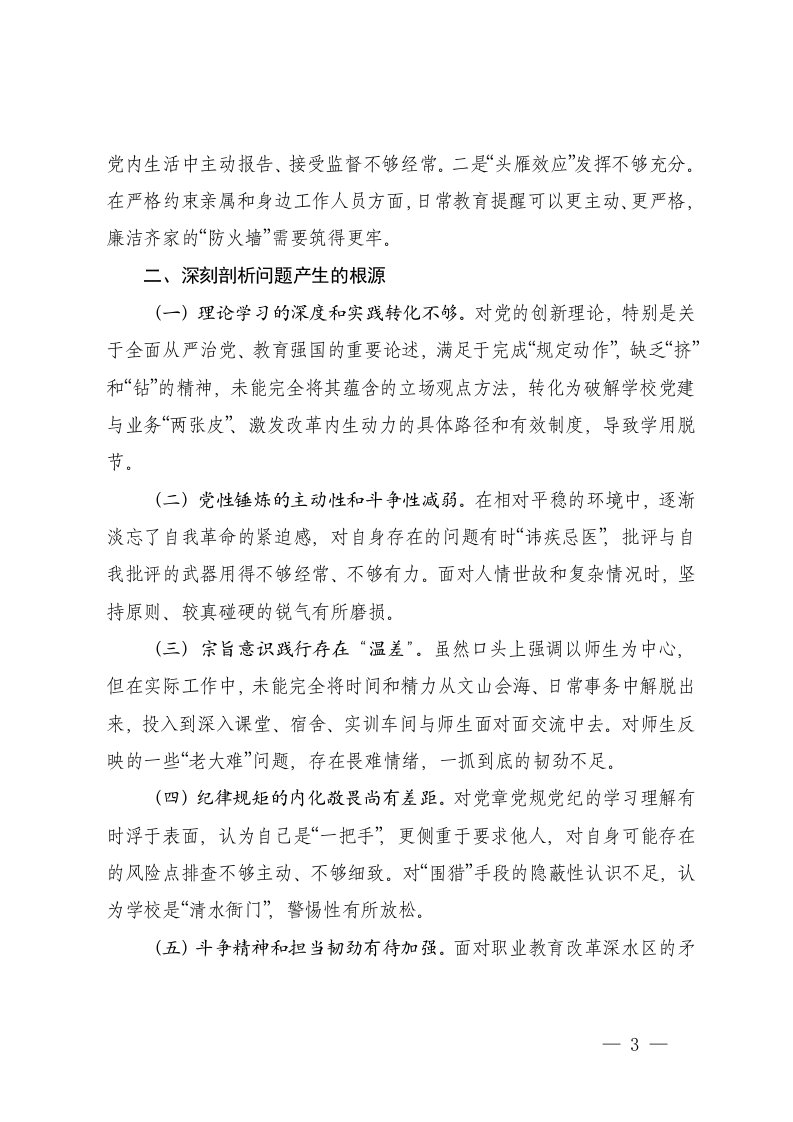 标题:学校党委书记专题民主生活会个人对照检查材料