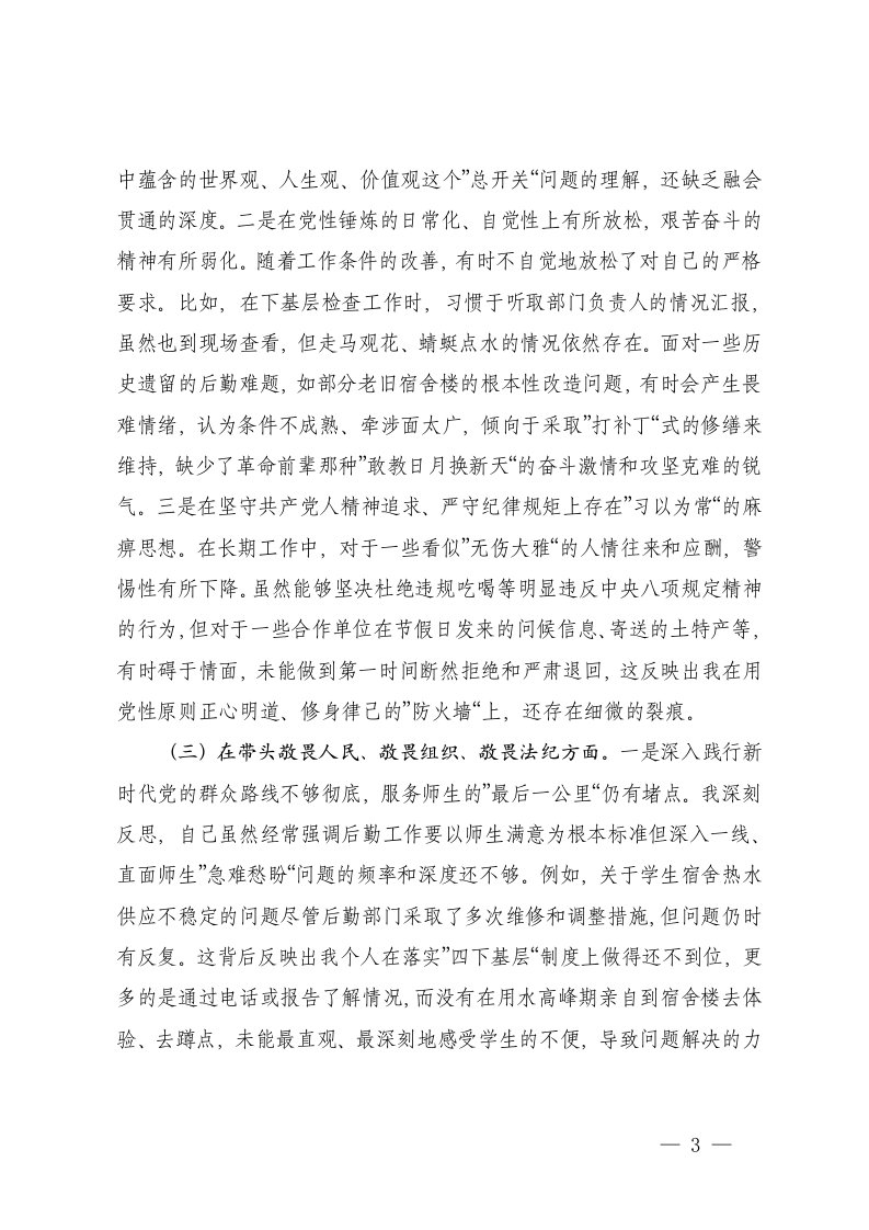 标题:学校领导2025年度民主生活会个人对照检查材料五个带头文稿