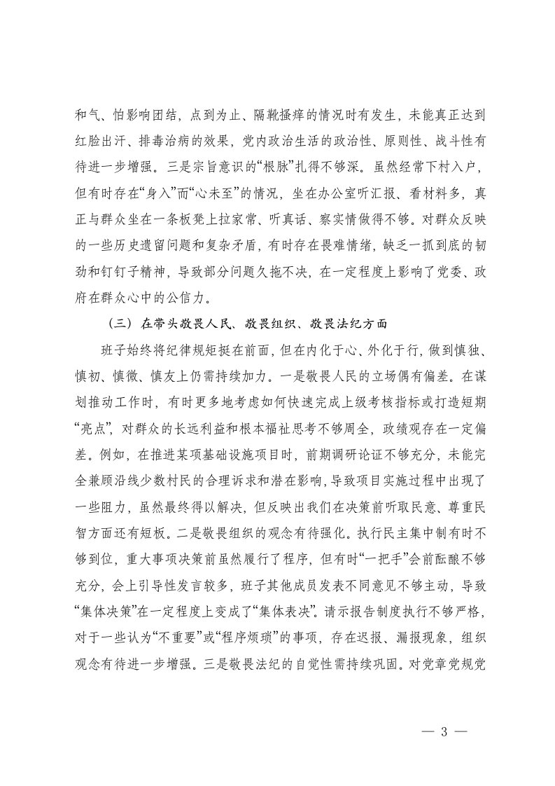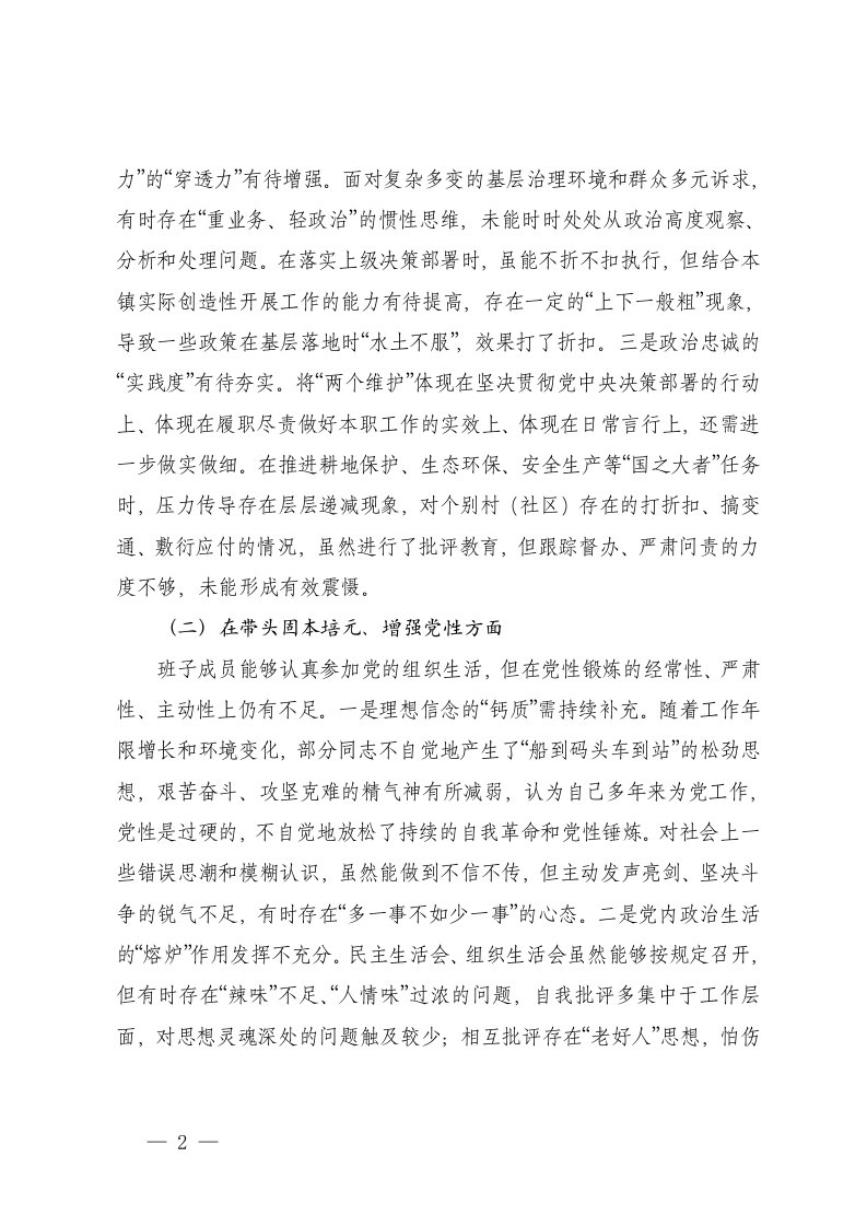 标题:镇党委班子2025年度民主生活会五个带头对照检查材料