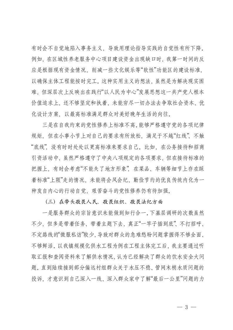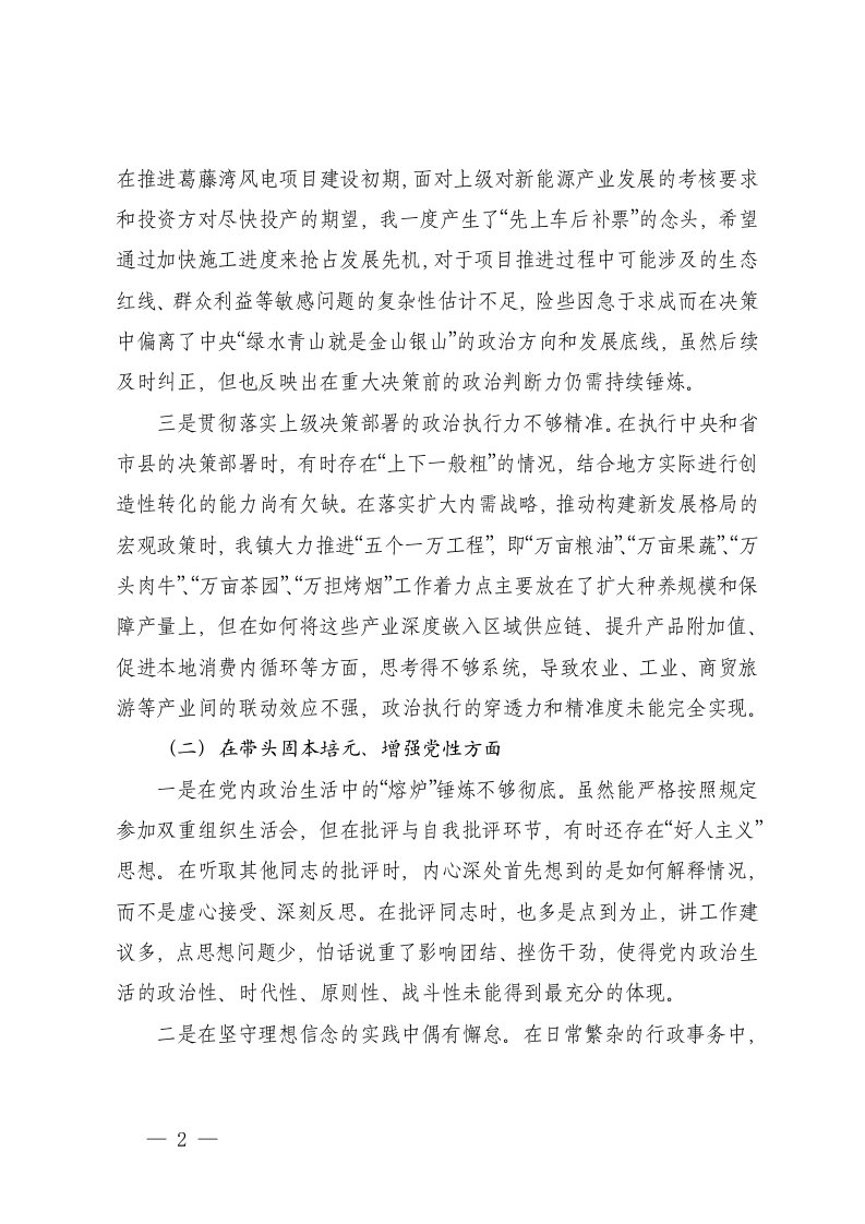标题:镇长2025年度民主生活会对照检查材料五个带头范文