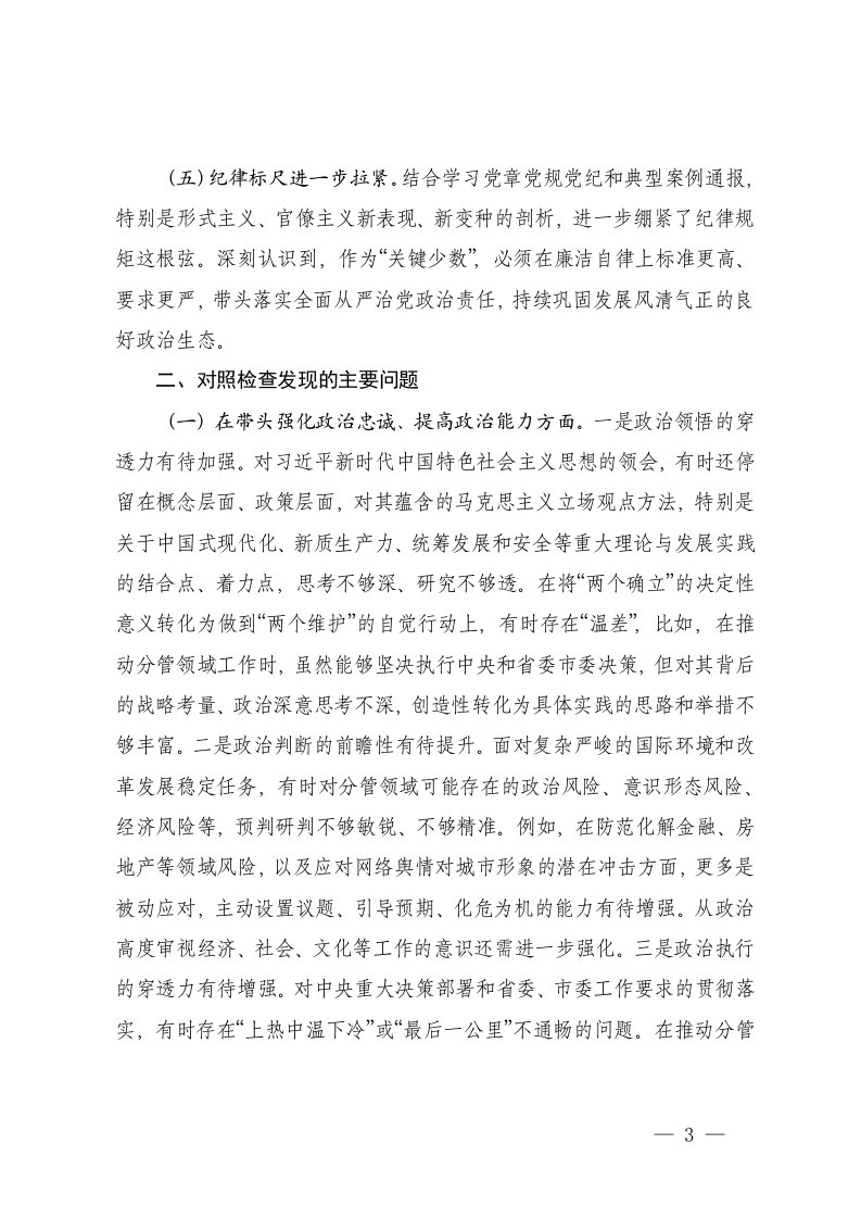 2025年度带头强化政治忠诚提高政治能力带头固本培元增强党性带头敬畏人民敬畏组织敬畏法纪带头干事创业担当作为带头坚决扛起管党治党责任