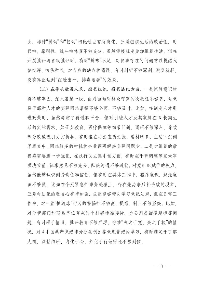 通用党支部书记2025年度民主生活会个人对照检查材料在带头敬畏人民敬畏组织敬畏法纪方面五个带头
