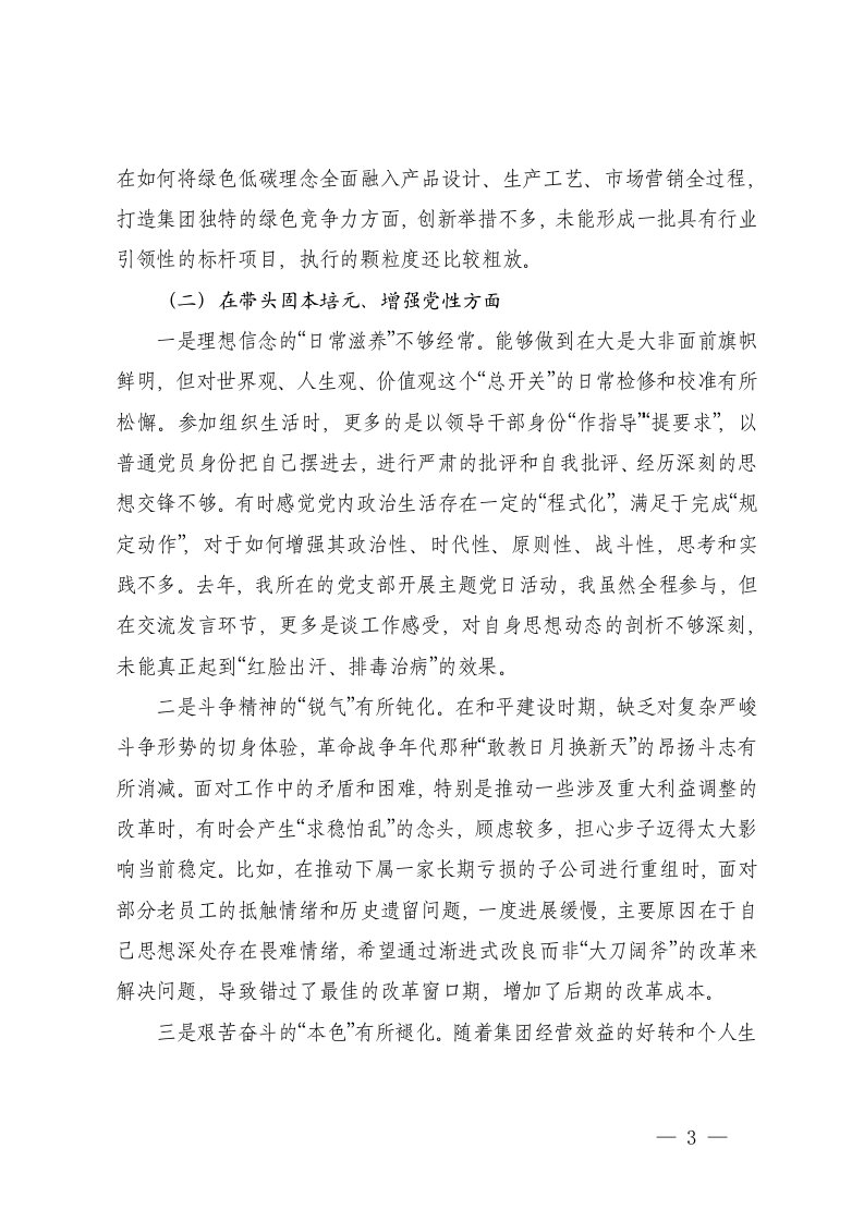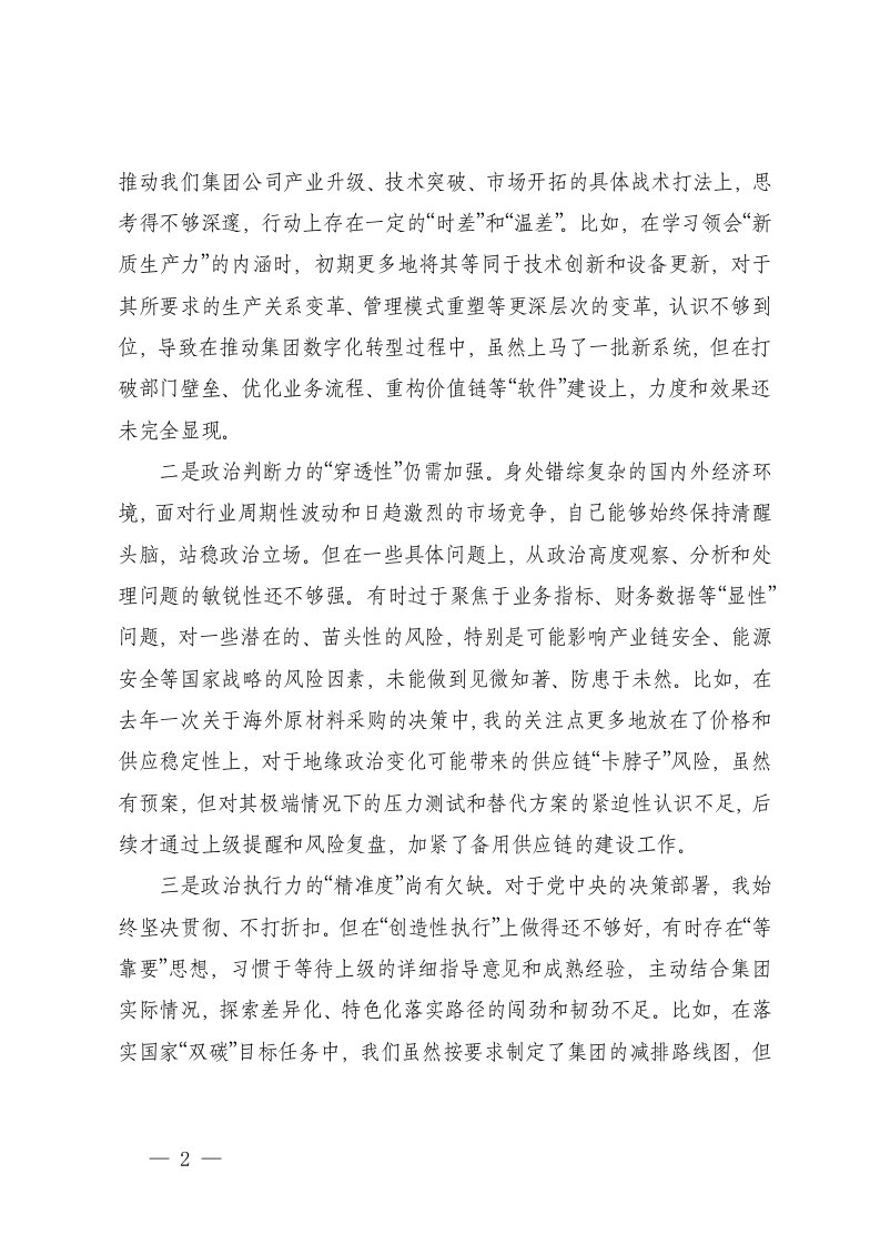 通用国企领导干部2025年度民主生活会在带头强化政治忠诚提高政治能力方面存在的不足对照检查材料