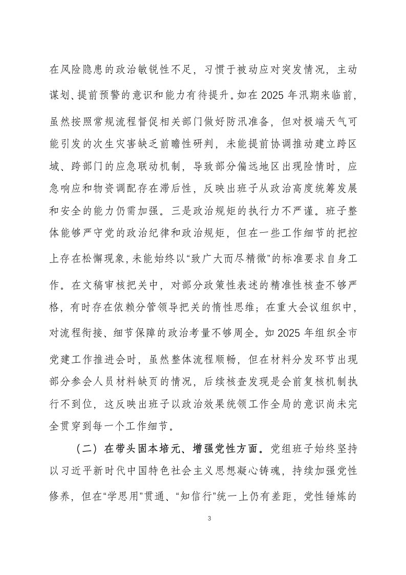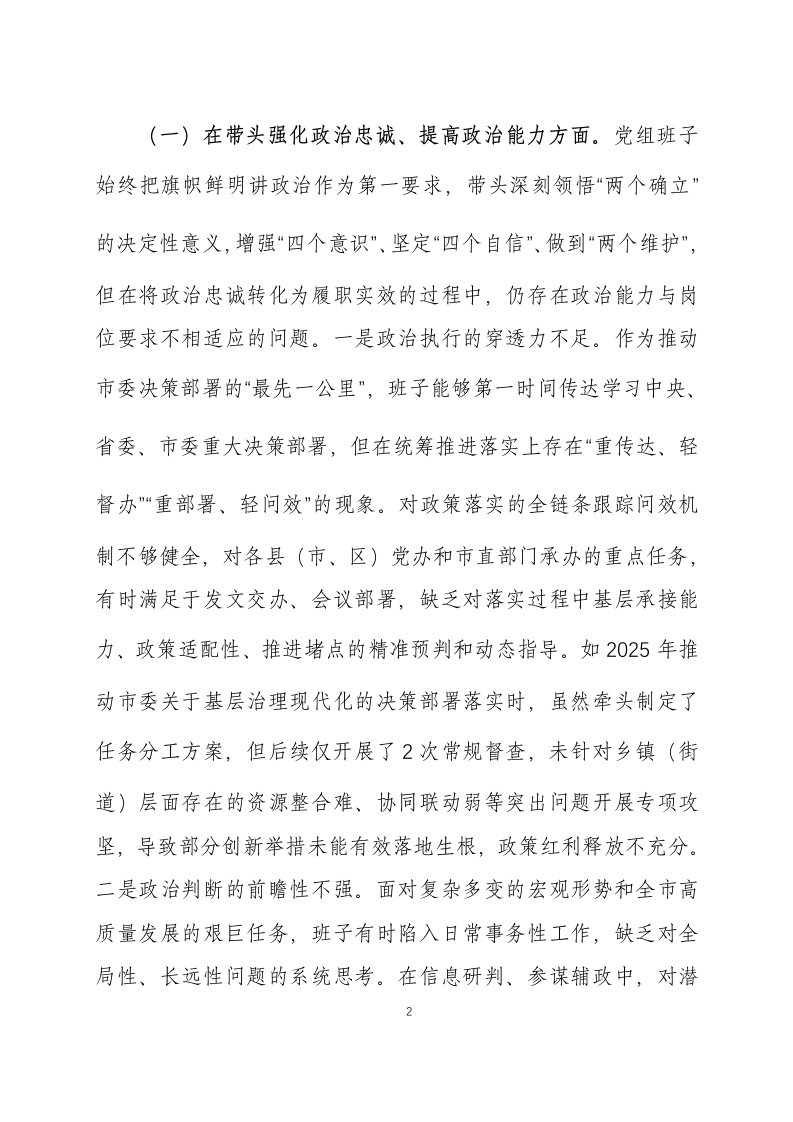 标题:2025年度民主生活会领导班子对照检查材料五个带头三篇