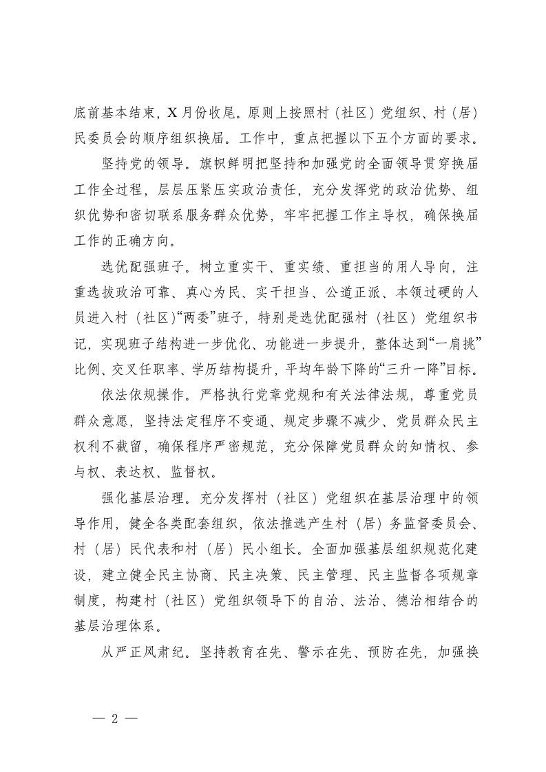 标题:2篇2025年村社区两委换届工作方案