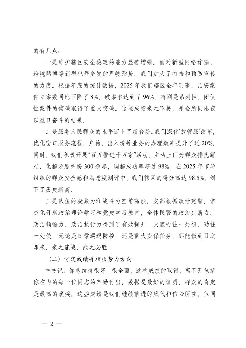 标题:2篇2025年度组织生活会会前谈心谈话记录
