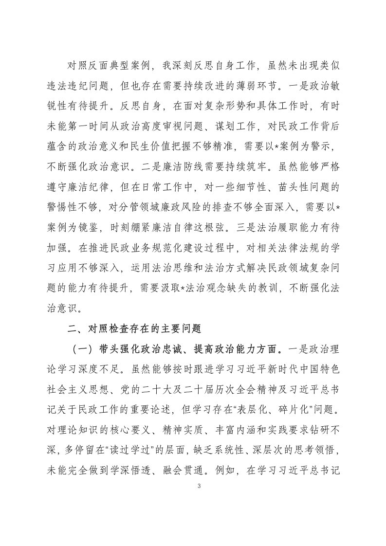标签: #民主生活会 #对照检查材料 #对照检查