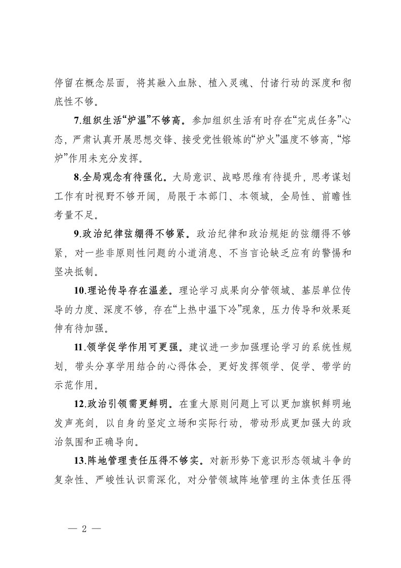 标题:2025年度民主生活会组织生活会批评与自我批评意见100条