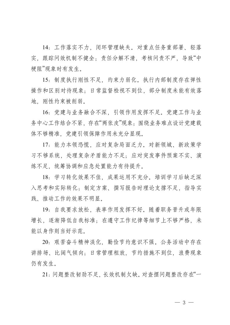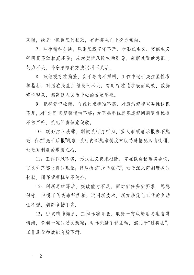 标题:2025年民主生活会对照检查查摆问题清单30条