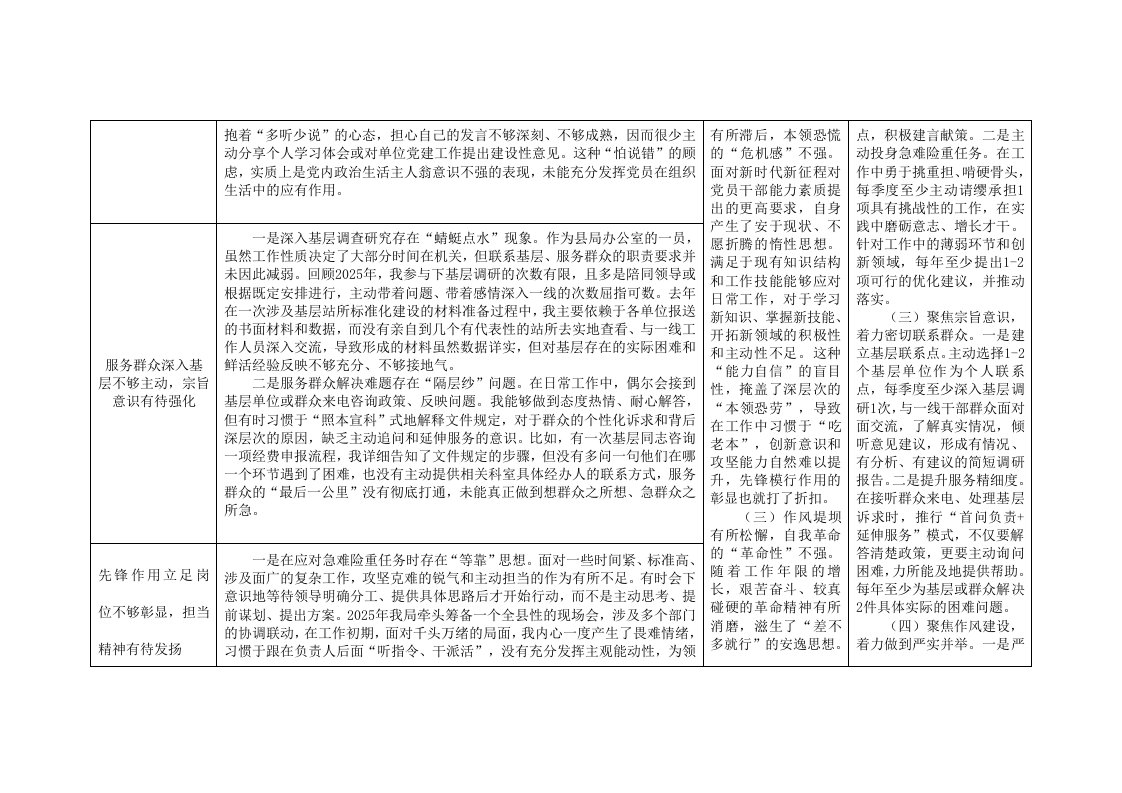 标题:2025年普通党员组织生活会对照检视问题台账五个带头