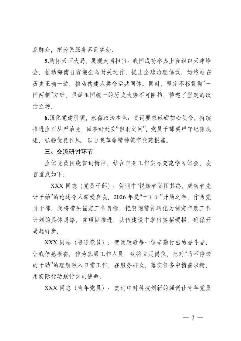标题:2026年1月党员大会专题学习习近平总书记二二六年新年贺词会议记录