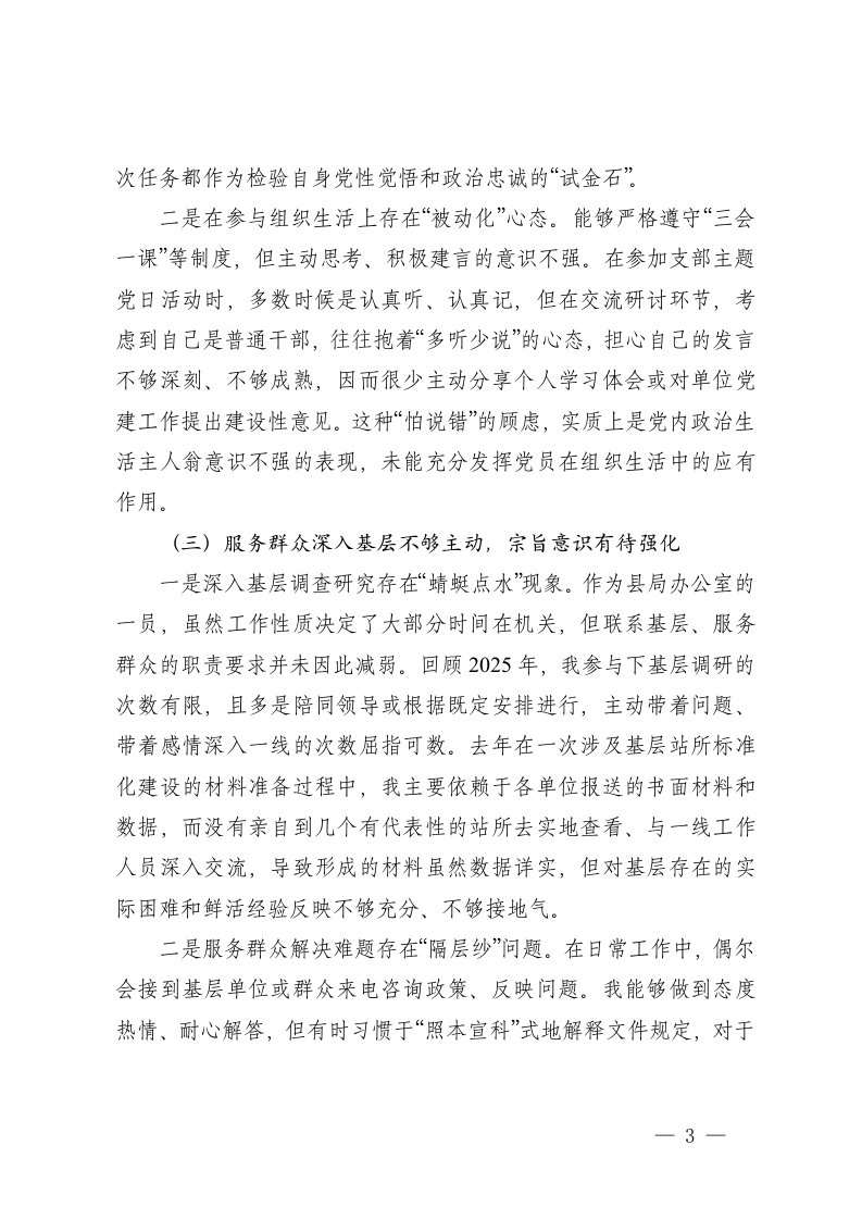 标题:党工委书记普通党员2025年度组织生活会对照检查材料五个对照