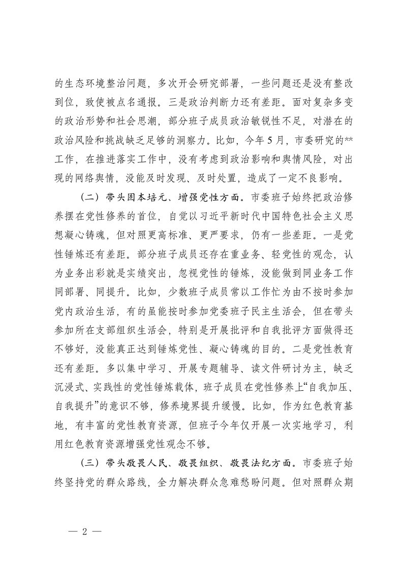 标题:2025年度市委班子民主生活会对照检查材料五个带头