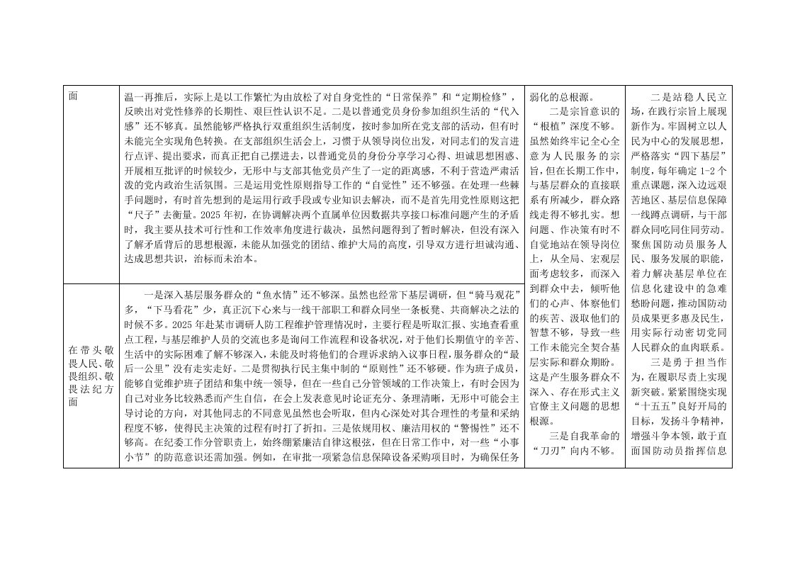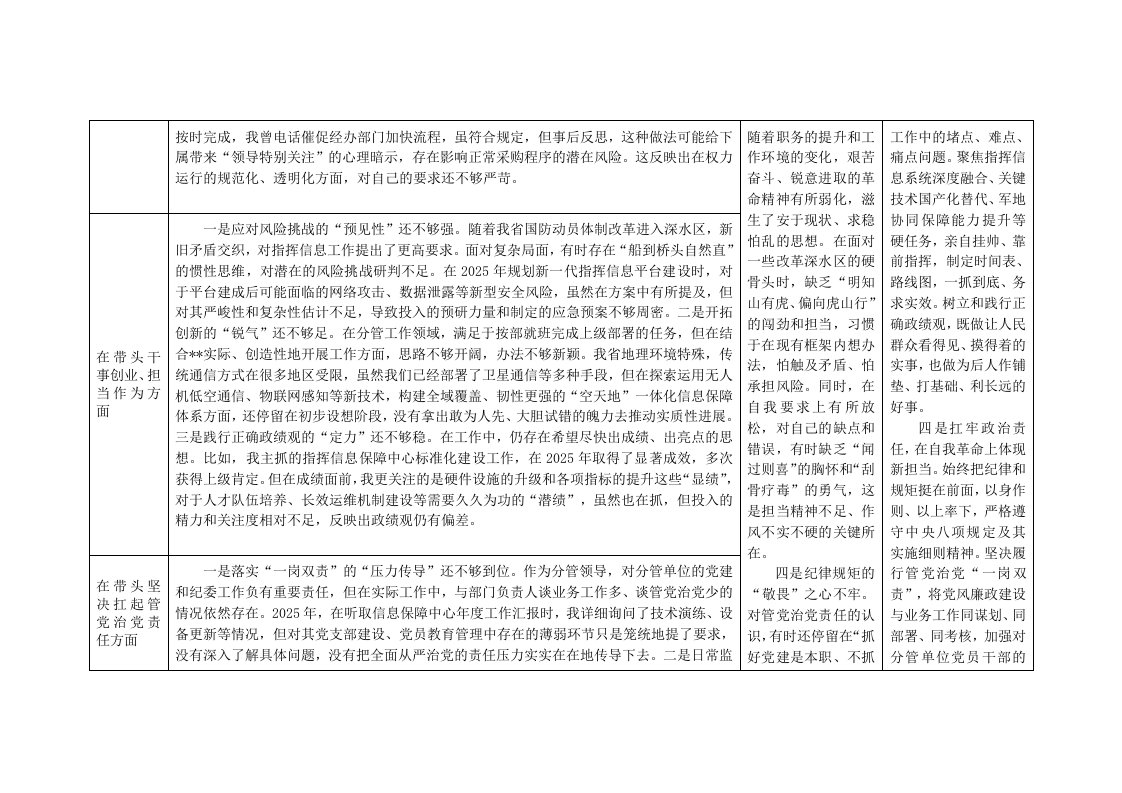 标题:2025年领导班子成员民主生活会对照检视问题台账六个带头