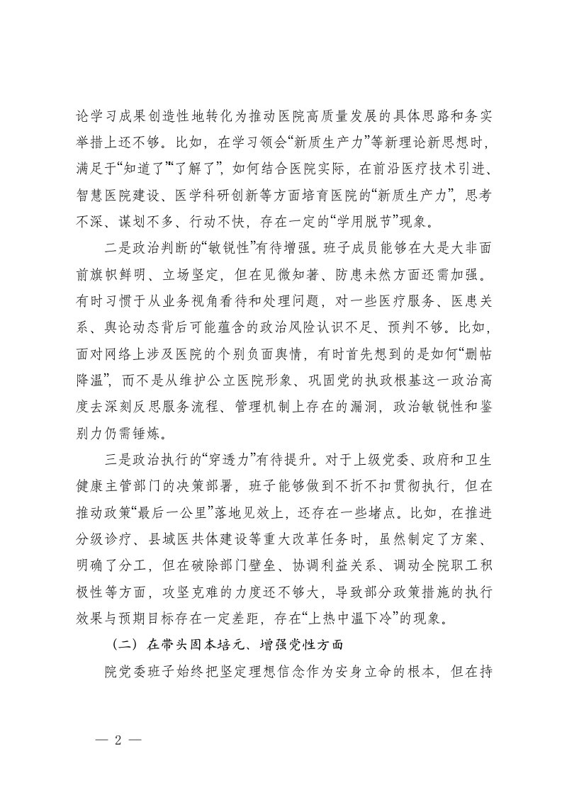 班子医院党委医学院2025年度在带头强化政治忠诚提高政治能力在带头固本培元增强党性在带头敬畏人民敬畏组织敬畏法纪在带头干事创业担当作为在带头坚决扛起管党治党责任五个带头存在的不足及整改措施