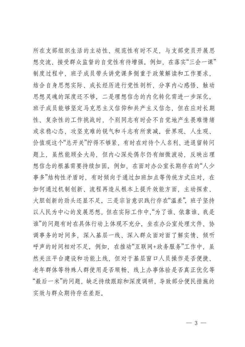 标题:党组领导班子2025年度民主生活会对照检查材料五个带头