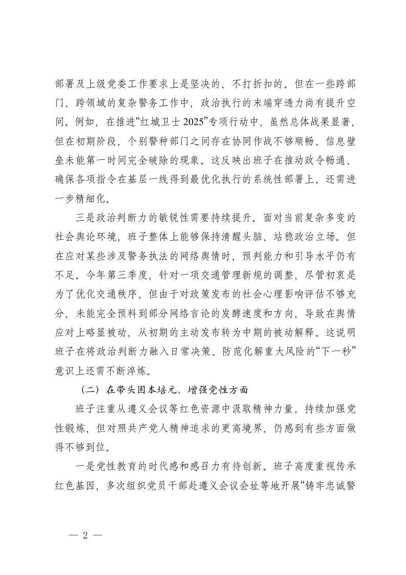 标题:公安局领导班子2025年度民主生活会对照检查材料五个带头