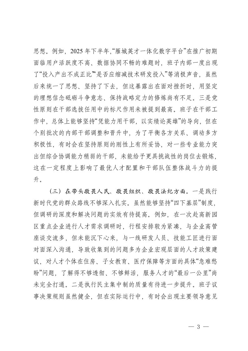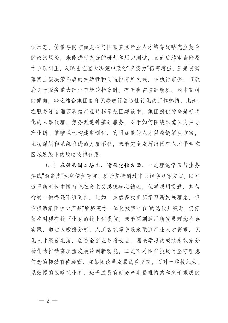 标题:公司2025年度民主生活会班子对照检查材料五个带头